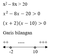 Nilai x yang memenuhi x2 – 8x > 20 yaitu ….