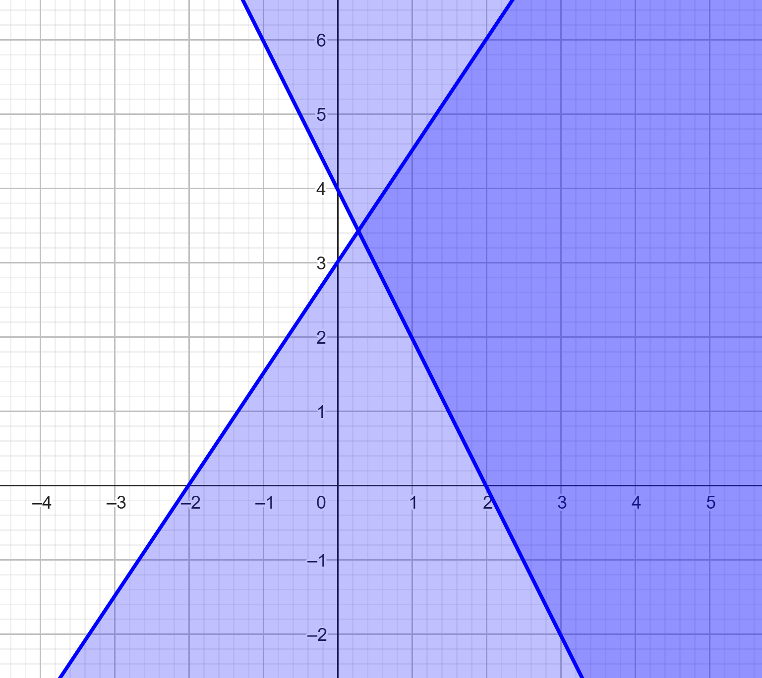 Sistem pertidaksamaan yang menunjukkan daerah penyelesaian yang diarsir pada grafik di atas, yaitu ….