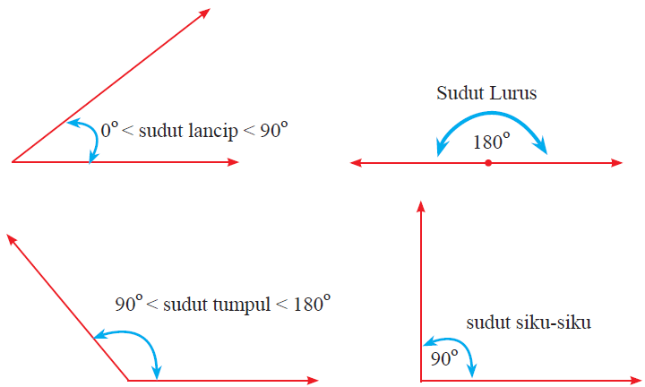 Gambar Sudut lancip, tumpul, siku-siku, dan sudut lurus