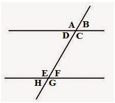 Dua garis berwarna hijau, merupakan dua segmen garis sejajar, kita sebut garis k dan garis l, dipotong oleh garis garis m pada Gambar diatas sehingga membentuk delapan sudut.
