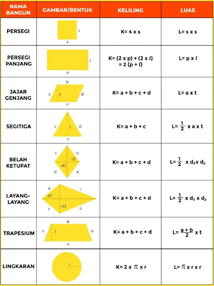 Berikut ini rumus keliling dan luas bangun datar
