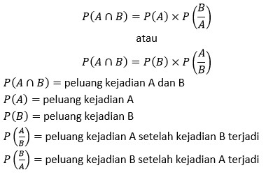Jika kejadian A dan B adalah dua kejadian yang saling bersyarat, dapat dirumuskan sebagai berikut: