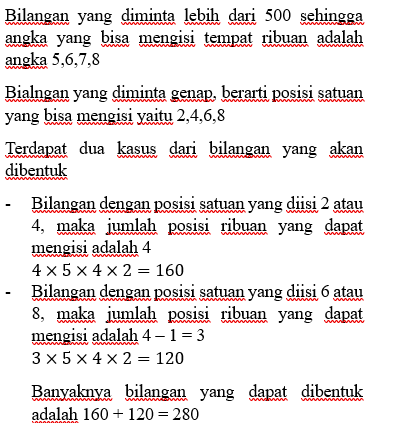 Diberikan angka 2 – 8. Banyaknya bilangan ribuan genap lebih dari 500 yang dapat disusun dengan angka yang berlainan adalah ….