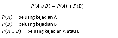 Peluang kejadian A atau B yang mungkin terjadi dengan A dan B adalah kejadian saling lepas, dapat dirumuskan sebagai berikut: