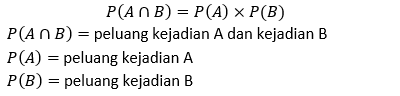 Peluang kejadian A atau B yang mungkin terjadi dengan A dan B adalah kejadian saling bebas, dapat dirumuskan sebagai berikut: