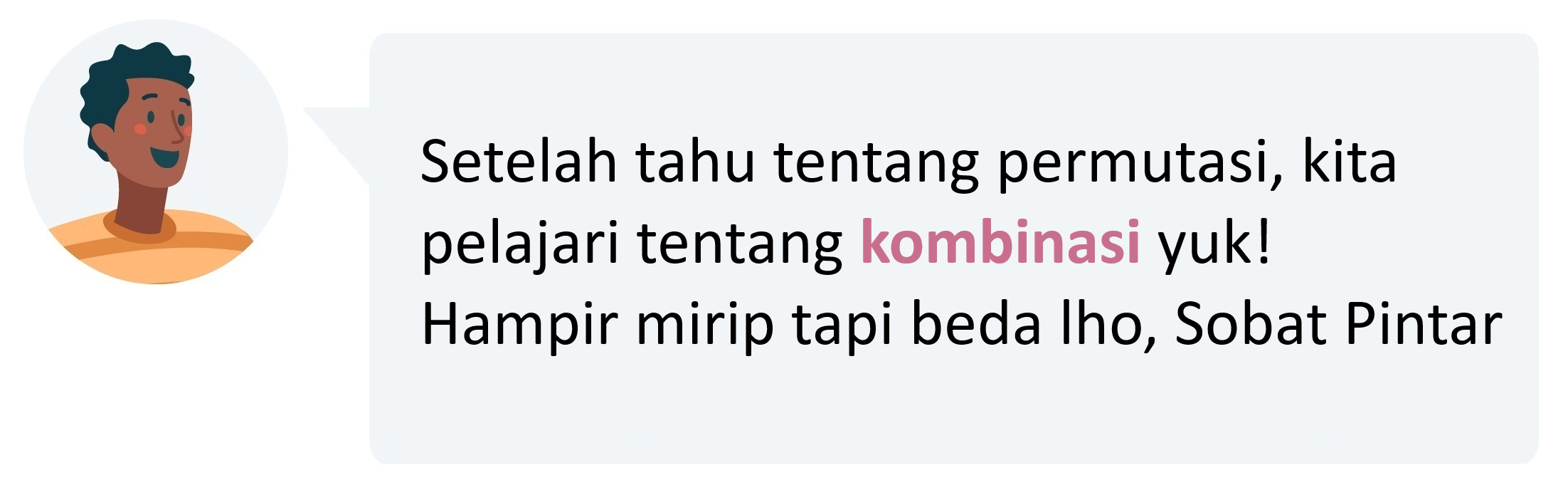 Kombinasi adalah banyaknya cara yang berbeda dalam memilih kelompok dengan mengambil beberapa atau semua anggota himpunan tanpa memperhatikan urutan.