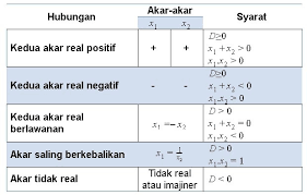 Hubungan sifat-sifat akar Persamaan Kuadrat dan Diskriminan