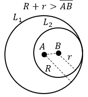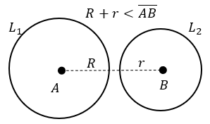 3. Jika D < 0, kedua lingkaran saling lepas, sehingga terdapat dua kemungkinan berikut: