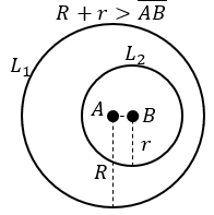 Misalkan terdapat dua lingkaran, lingkaran L1 berpusat di A dengan jari-jari R dan lingkaran L2 berpusat di B dengan jari-jari r. Kedudukan dua lingkaran dapat ditentukan oleh nilai deskriminan, yaitu D = b2 – 4ac. Persamaan dari salah satu lingkaran dapat disubstitusikan pada persamaan lingkaran yang lain, kemudian hasilnya dapat menentukan kedudukan dari kedua lingkatan dengan ketentuan: