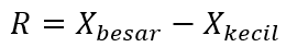 Jangkauan atau rentang dihitung dari selisih antara datum terbesar dengan datum terkecil.