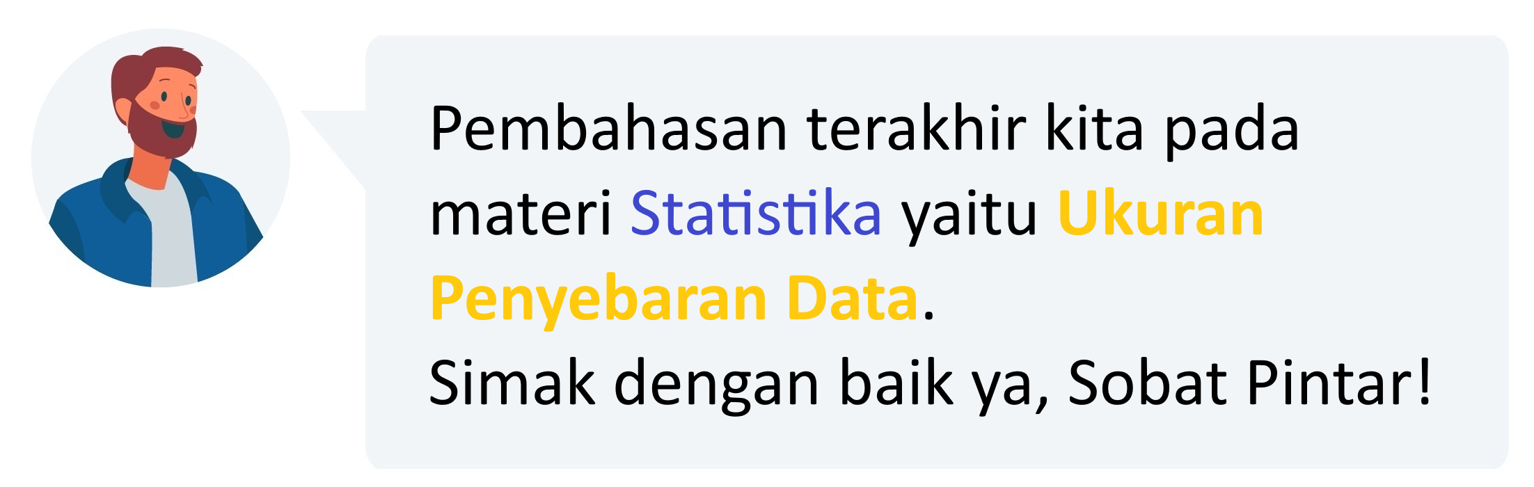 Ukuran penyebaran data merupakan ukuran yang menunjukkan seberapa besar penyebaran atau penyimpangan atau variasi nilai-nilai data dari nilai pusatnya. Ukuran penyebaran data digunakan untuk mengetahui seberapa jauh datum menyebar dari titik pemusatannya. Ukuran penyebaran data diantaranya yaitu : jangkauan, jangkauan interkuartil, simpangan rata-rata, varians, dan simpangan baku (standar deviasi).