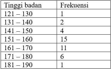 Dalam data kelompok, x merupakan nilai tengah dari kelas dengan data terbesar dan nilai tengah dari kelas dengan data terkecil.