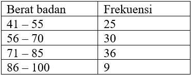 1. Tentukan kelas dengan frekuensi terbanyak, kelas tersebut merupakan kelas modus