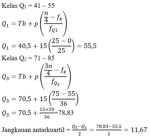 Setelah menentukan letaknya, tentukan kelas kuartil sesuai dengan letaknya, kemudian substitusikan pada rumus :