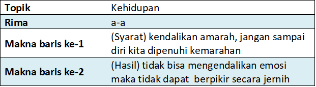 - Pada setiap baris memiliki rima maupun sajak a-a, b-b, c-c, dan seterusnya.