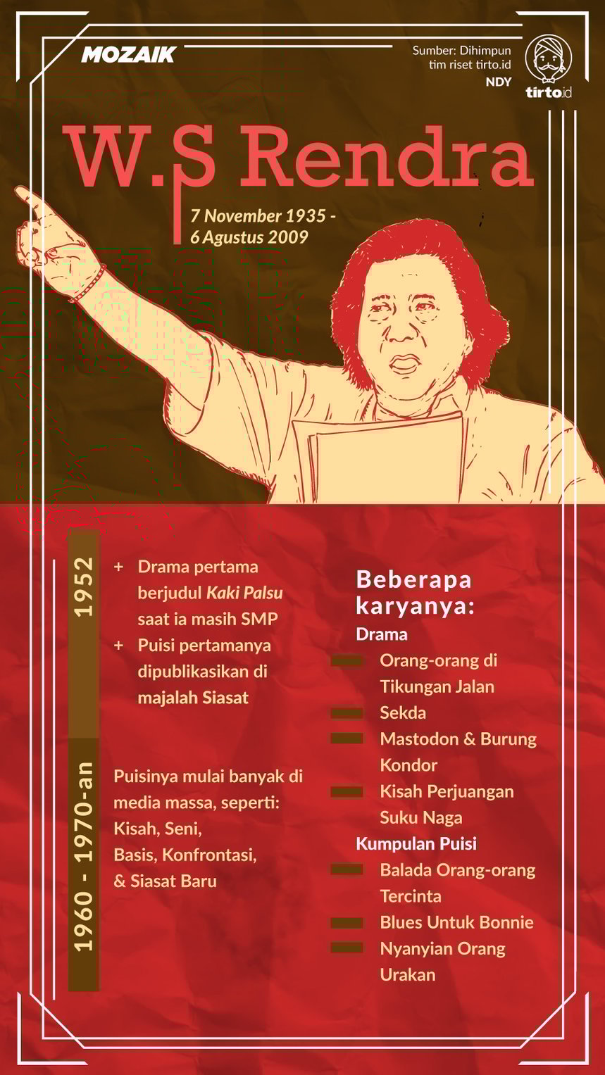 Berdasarkan gambar di atas, kita tahu bahwa Rendra memulai kariernya sebagai seorang penulis drama pada tahun …