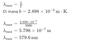 Sebuah benda memiliki suhu 5x103 K. Tentukan panjang gelombang radiasi yang dipancarkan!