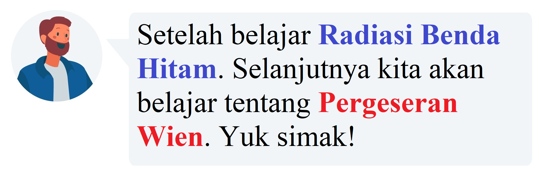 Menurut Wien, “Panjang gelombang untuk intensitas cahaya maksimum berkurang dengan meningkatnya suhu”. Hukum ini dinyatakan dengan persamaan