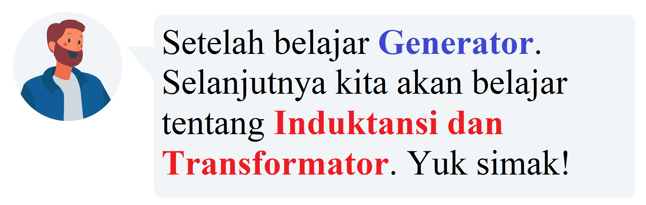 Sobat Pintar sudah memahami bahwa perubahan fluks magnetik dalam kumparan menghasilkan GGL induksi. Generator memanfaatkan konsep ini untuk menghasilkan energi listrik. Generator pada dasarnya terdiri dari dua komponen utama: magnet dan kumparan. Kumparan tersebut diputar dalam medan magnet untuk menghasilkan perubahan fluks magnetik yang akan menginduksi GGL dan pada akhirnya menghasilkan arus listrik dalam rangkaian tertutup. Prinsip ini menggambarkan bagaimana energi mekanik dari gerakan putaran kumparan dapat diubah menjadi energi listrik.