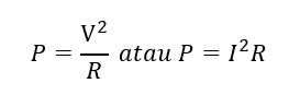 Substitusikan persamaan hambatan, sehingga daya listrik juga dapat dinyatakan dengan: