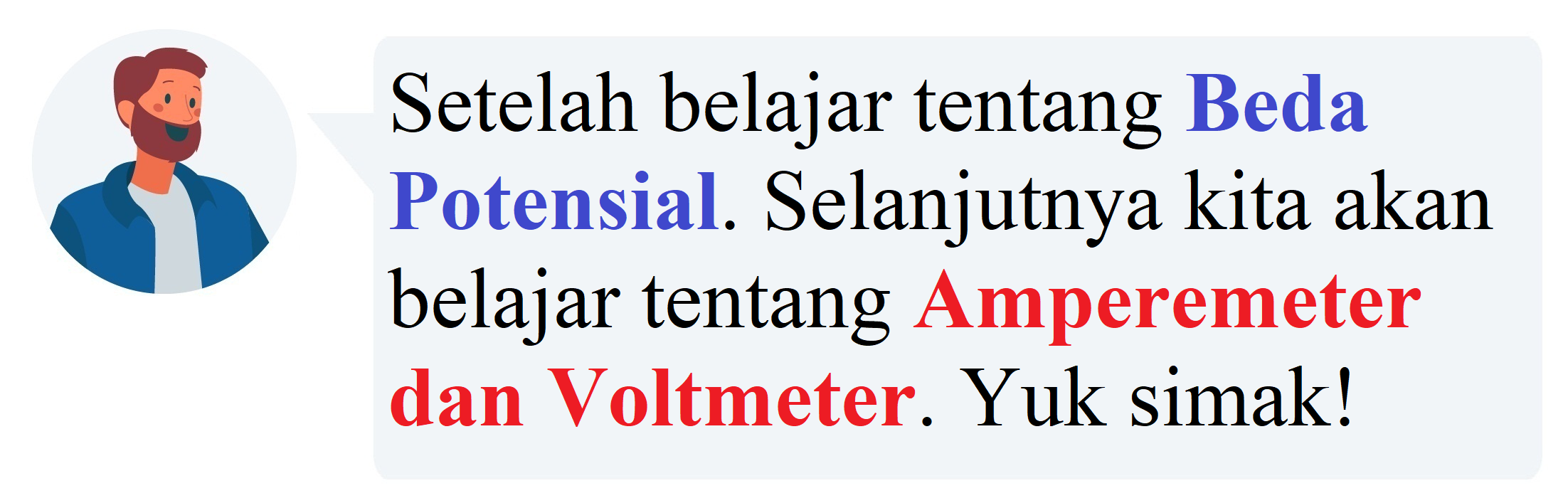 Kalo kamu mau tau nilai kuat arus listrik dapat diukur dengan alat amperemeter, sedangkan beda potensial listrik dapat diukur dengan alat voltmeter, atau bisa menggunakan multimeter untuk bisa mengukur tiga besaran sekaligus yaitu kuat arus, beda potensial dan hambatan listrik.