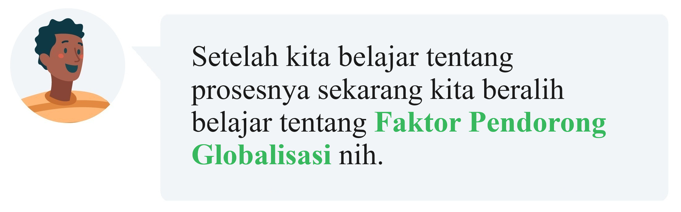 Proses globalisasi sudah ada sejak zaman dahulu dan berlangsung terus-menerus sampai sekarang. Proses perkembangannya pun berbeda, di mana zaman dahulu globalisasi berkembang secara lambat dan lama, sedangkan sekarang berkembang secara cepat dan seakan tanpa batas. Perkembangan globalisasi yang begitu cepat didukung oleh faktor sebagai berikut:
