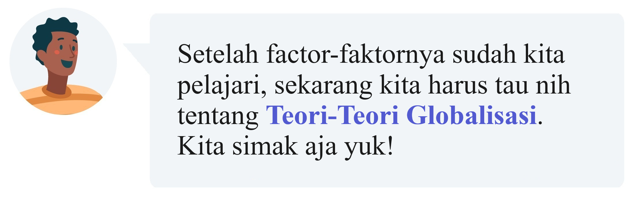 Terdapat sejumlah teori globalisasi yang dikemukakan oleh para ahli, diantaranya yaitu sebagai berikut: