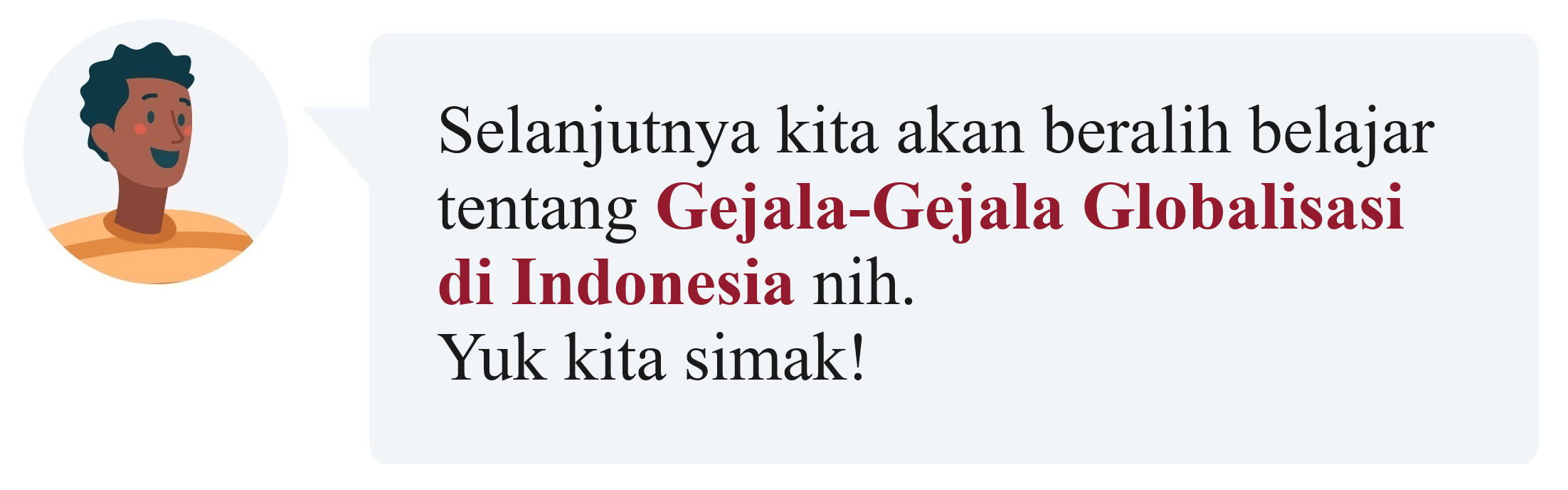 - Terbentuknya kesadaran global sebagai hasil akhir globalisasi.