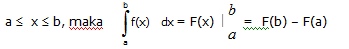 a dan b disebut batas integral dengan a merupakan batas bawah dan b merupakan batas atas.