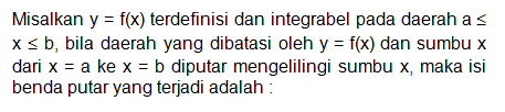 1. Volume benda putar bila luasan yang dibatasi oleh
