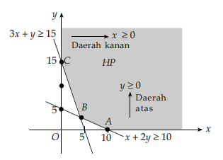Perhatikan daerah penyelesaian dari grafik pada gambar di atas.