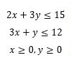 Carilah nilai x dan y sehingga fungsi f(x,y) = 3x+4y bernilai maksimal dengan kendala bahwa: