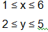 (1,2),(1,5),(6,2),(6,5)