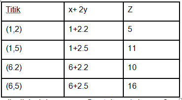 Nilai maksimumnya = 16 untuk x = 6 dan y = 5