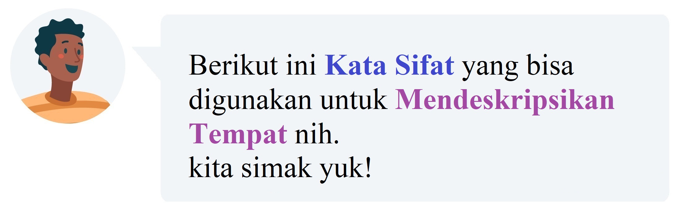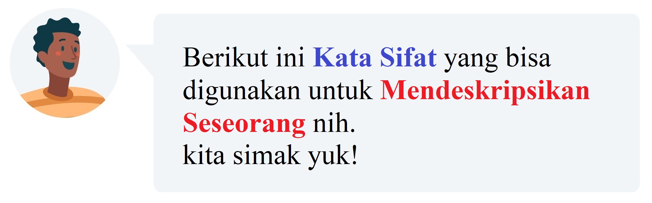 Nah, Sobat pintar, dalam mendeskripsikan atau menggambarkan sesuatu, kita perlu salah satu kategori kata, yaitu kata sifat / adjective.