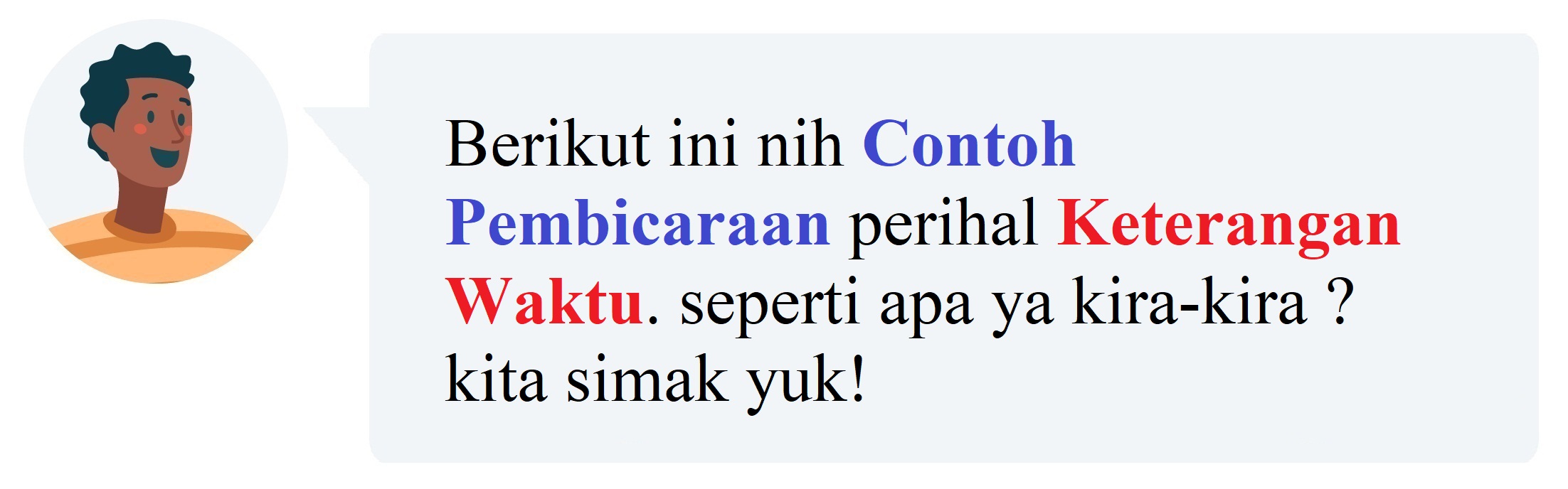 Berikut ini merupakan contoh dialog menggunakan keterangan waktu, perhatikan ya Sobat..