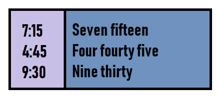 Kita dapat langsung membaca jamnya satu-persatu seperti bagaimana kita menggunakan bahasa Indonesia, contohnya nih: