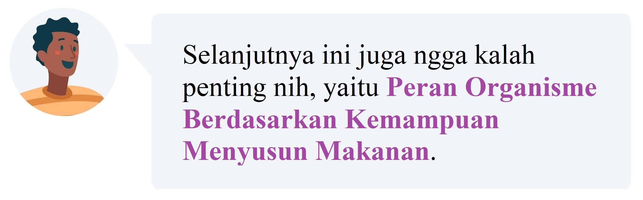 Yuk Sobat kita lanjut ke Peran Organisme Berdasarkan Kemampuan Menyusun Makanan