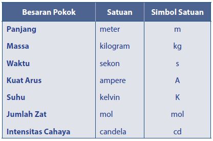 Massa, waktu, suhu, kuat arus listrik, dan panjang merupakan kumpulan satuan-satuan pokok.