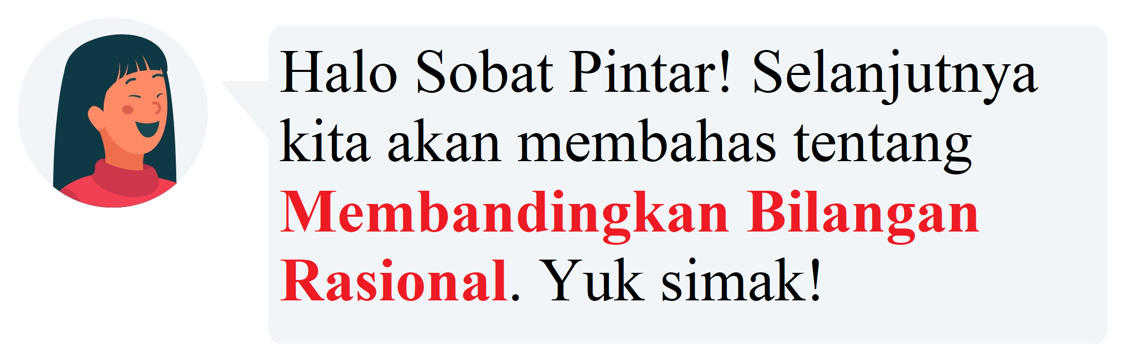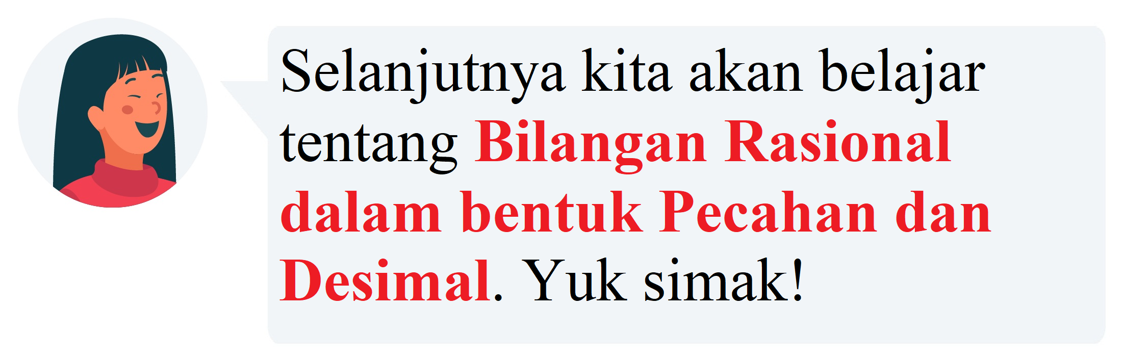 Dalam rangkaian dua bilangan bulat, terdapat sebuah bilangan lain yang tidak termasuk dalam kategori bilangan bulat. Bilangan itu disebut Bilangan Rasional. Sobat Pintar tau nggak apa definisi bilangan rasional? Bilangan rasional merujuk pada suatu bilangan yang dapat diwakili dalam bentuk pecahan biasa (a/b), dan jika dinyatakan dalam bentuk desimal, angkanya akan berhenti setelah sejumlah digit atau akan membentuk pola pengulangan.