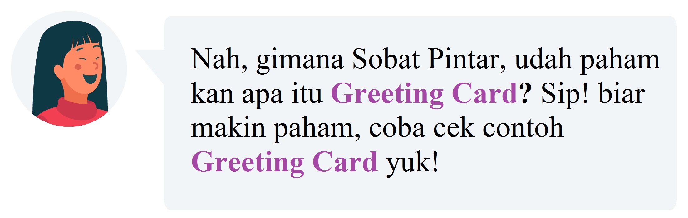 Ayo, Sobat, kalian juga coba buat greeting card yang singkat seperti contoh di atas.