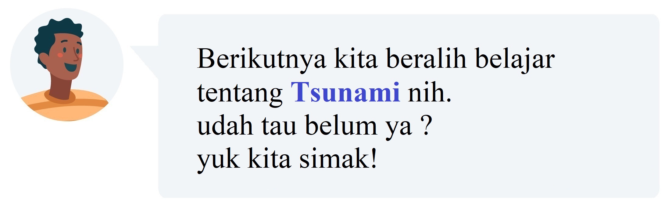 Sebelum gelombang tsunami sampai di pantai, air laut yang ada di pantai surut seketika. Hal tersebut merupakan pertanda bahaya akan terjadi gelombang tsunami. Proses terjadinya gelombang tsunami dapat dilihat pada gambar berikut.