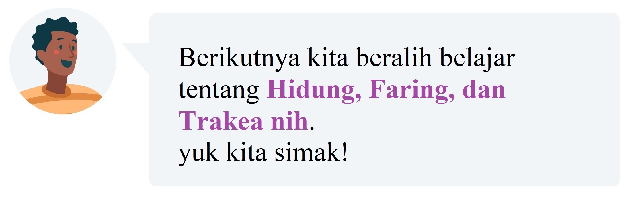 - Sistem pernapasan bagian atas, meliputi hidung dan faring.