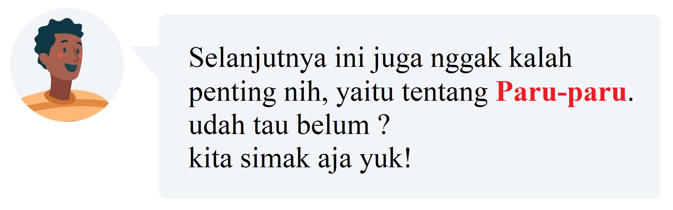 Paru-paru merupakan alat pernapasan utama. Paru-paru terbagi menjadi dua bagian, yaitu paru-paru kanan (pulmo dekster) yang terdiri atas 3 lobus dan paru-paru kiri (pulmo sinister) yang terdiri atas 2 lobus. Paru-paru dibungkus oleh selaput rangkap dua yang disebut pleura. Pleura berupa kantung tertutup yang berisi cairan limfa. Pleura berfungsi melindungi paru-paru dari gesekan saat mengembang dan mengempis. Di dalam paru-paru terdapat bagian yang berperan dalam pertukaran gas oksigen dan gas karbon dioksida yaitu alveolus.