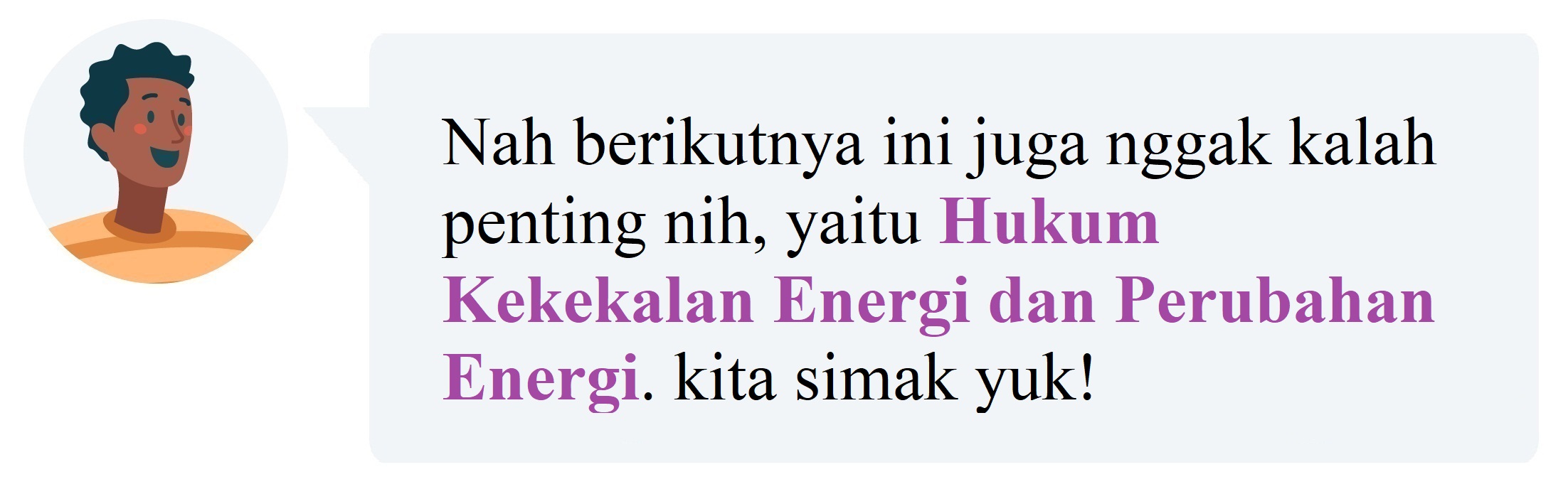 “Energi tidak dapat diciptakan ataupun dimusnahkan, energi hanya dapat diubah bentuk dari bentuk energi satu ke bentuk energi yang lain".