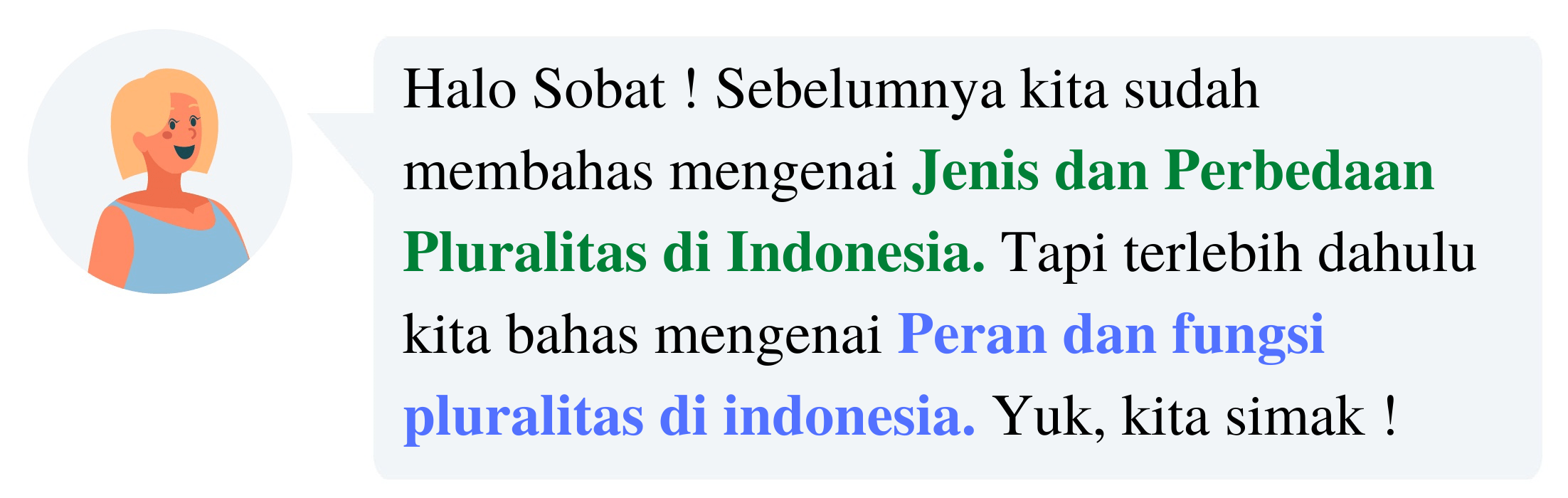Hai sobat pintar! banyak sekali perbedaan dalam berbagai hal di dalam negara kesatuan kita nih, negara Indonesia. nah berbagai macam perbedaan dan jenisnya, yuk kita sama-sama bahas macam-macam perbedaan pluralitas di indonesia. Kekayaan serta keberagaman yang dimiliki oleh Indonesia menjadikannya sebagai suatu negara yang multikultural yaitu masyarakat yang hidup serta berdampingan dengan berbagai macam jenis kebudayaan, namun antara satu dan lainnya tetap saling menjaga serta menghormati perbedaan budaya yang ada. Pluralisme kehidupan sosial dipengaruhi oleh berbagai macam jenis faktor seperti kondisi geografis, kegiatan ekonomi, dan lain sebagainya.