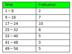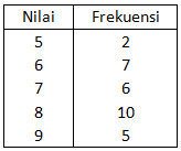 Perhatikan tabel nilai ulangan matematika berikut ini!