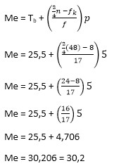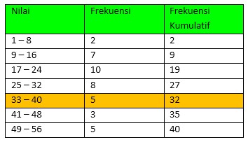 Jadi, Median atau Nilai Tengah dari data diatas ialah 30,2