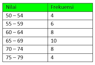 Nilai kuartil bawah dari data pada tabel di atas adalah 59,5