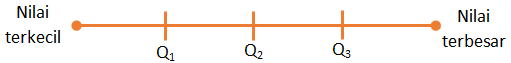 Kuartil adalah nilai yang membagi data yang telah diurutkan menjadi empat bagian yang sama banyak. Karena membagi menjadi empat bagian sama banyak, artinya terdapat 3 nilai kuartil, yaitu Kuarti Bawah (Q1), Kuartil Tengah (Q2), dan Kuartil Atas (Q3).